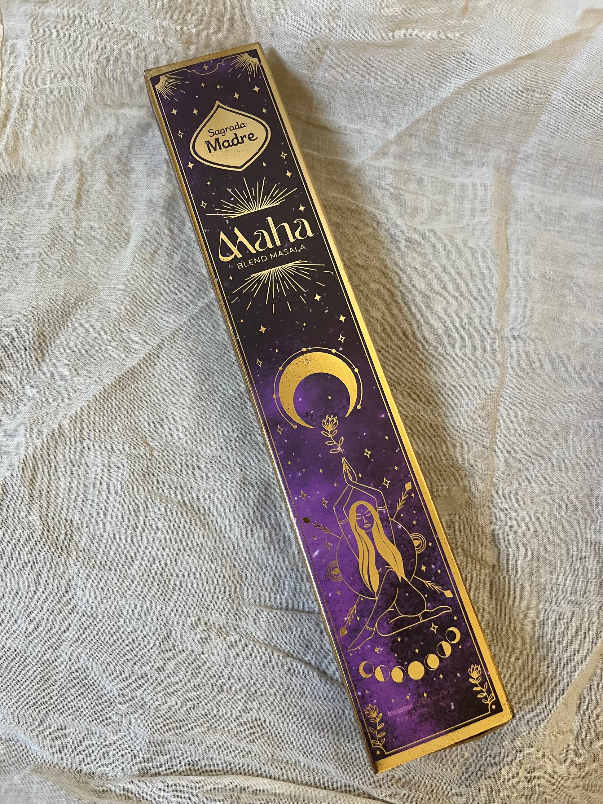 Incienso orgánico sagrada madre elaborados a mano con productos 100% naturales compuestos a partir de pétalos de rosa, biomasa de frutas y miel de caña. Este incienso tan especial contiene la energía del sol, la luna y las estrellas.