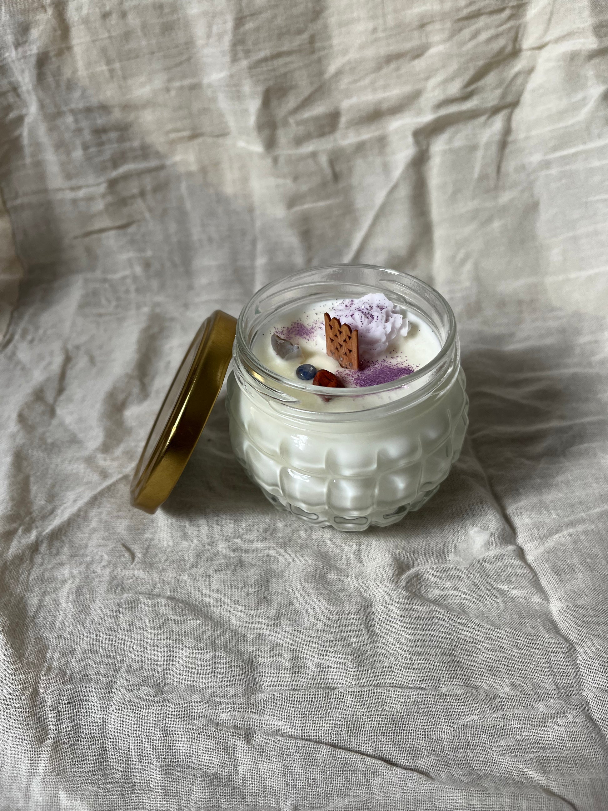 Vela aromática hecha artesanalmente con cera de soja 100% natural, no testado en animales y veganas.